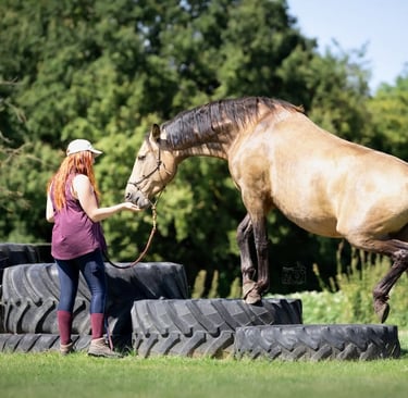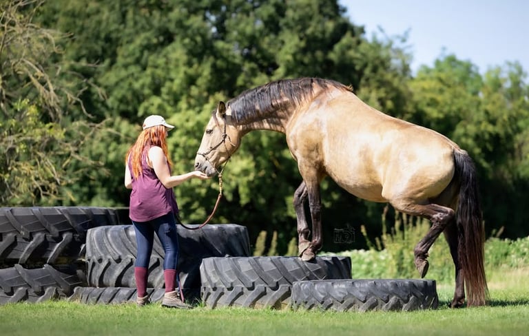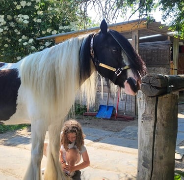 Quand tu as non seulement trouvé l'endroit où tes chevaux s'épanouissent mais également la personne qui, avec son bagage de connaissances énorme, sait te travailler ton cheval dans le calme, la bienveillance et le respect, ce qui nous fait faire des fabuleux bonds en avant. Merci pour tes bons soins et conseils!