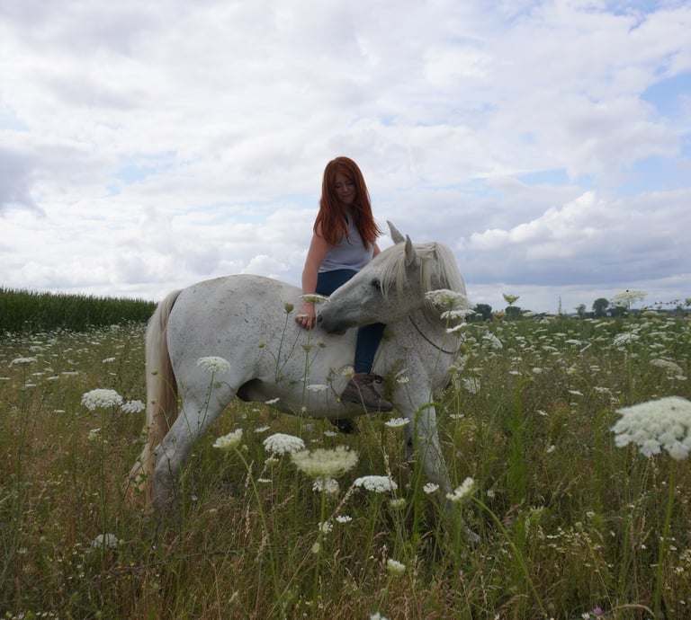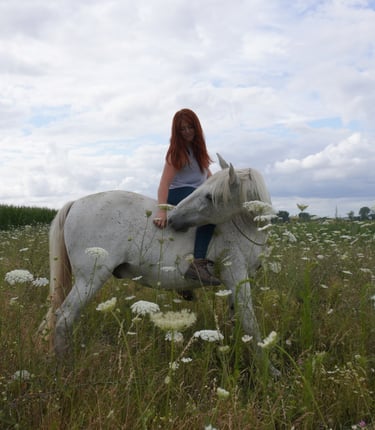 Quand tu as non seulement trouvé l'endroit où tes chevaux s'épanouissent mais également la personne qui, avec son bagage de connaissances énorme, sait te travailler ton cheval dans le calme, la bienveillance et le respect, ce qui nous fait faire des fabuleux bonds en avant. Merci pour tes bons soins et conseils!